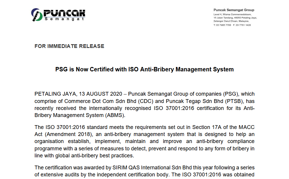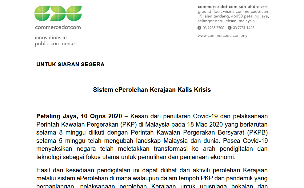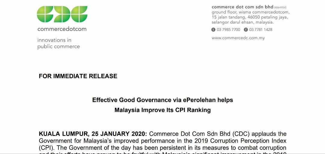 Effective Good Governance via ePerolehan helps Malaysia Improve Its CPI Ranking